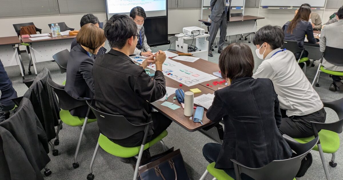「経営計画の策定」では、外部環境・内部環境の要素を付箋に書き出し、多様な意見を効率的に整理して、それぞれの関係性や発想のつながりを可視化します。意見を形にすることで、ワークも盛り上がっています。